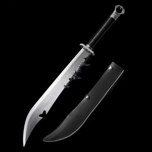 Discover the Silver Dragon War Knife, a Tang Hengdao masterpiece with intricate embroidery and a spring blade, perfect for martial arts and outdoor activities.