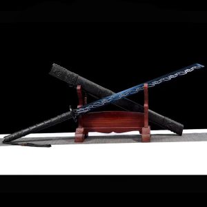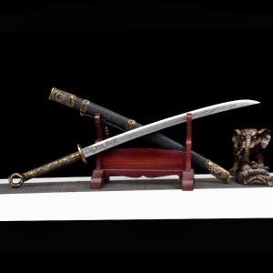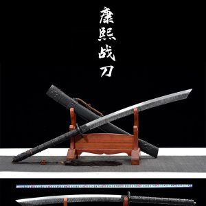 The Kangxi Zhandao stands as a two-handed Chinese broadsword which warriors admire because of its strong construction and effective chopping abilities. The blade serves as a weapon that unites sword and polearm characteristics which makes it popular among Kung Fu practitioners and sword enthusiasts.