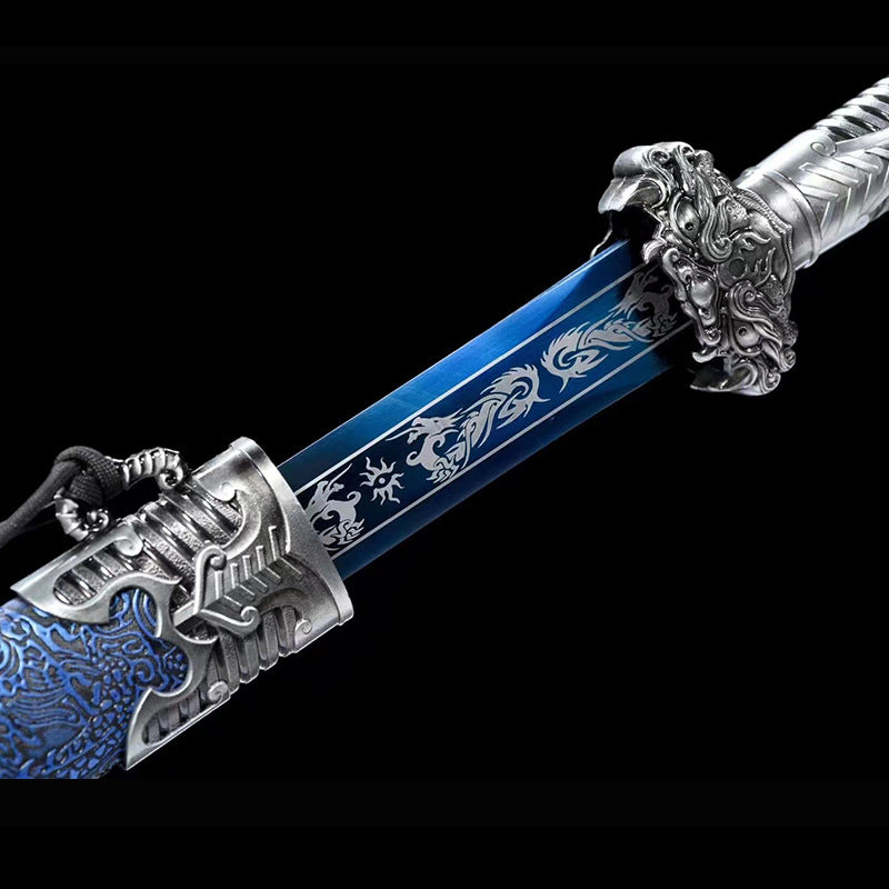 Sheath material: solid wood dragon pattern leather wrapped