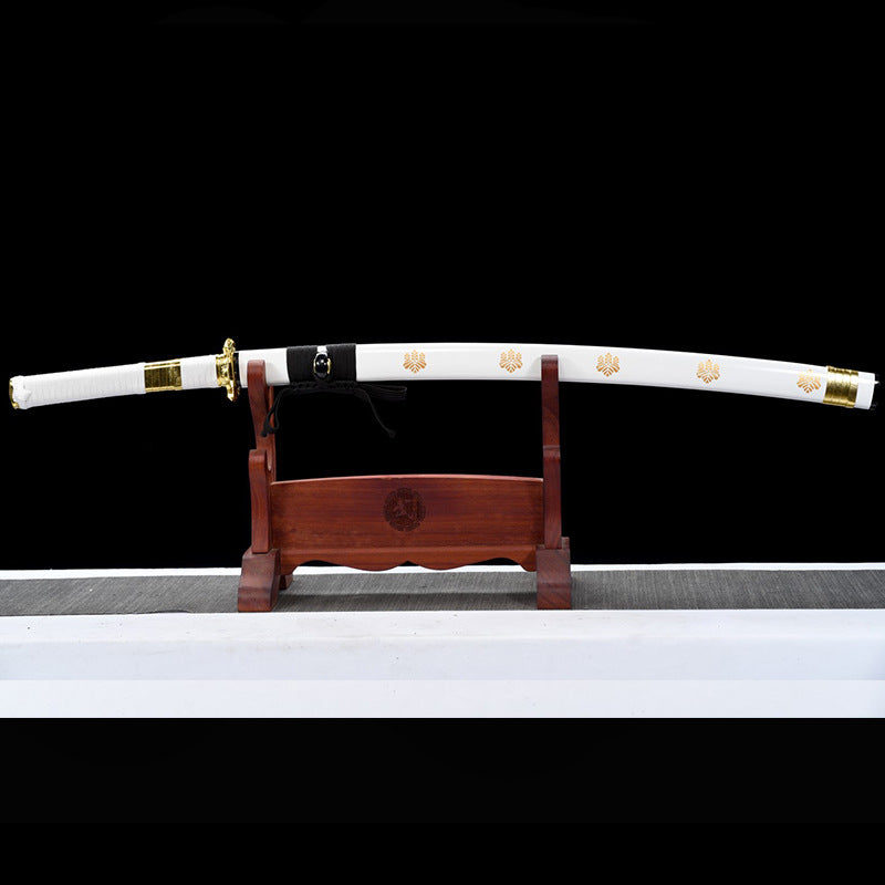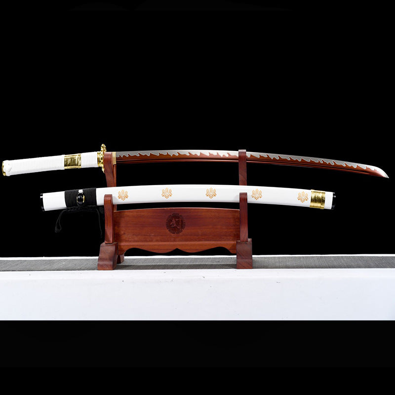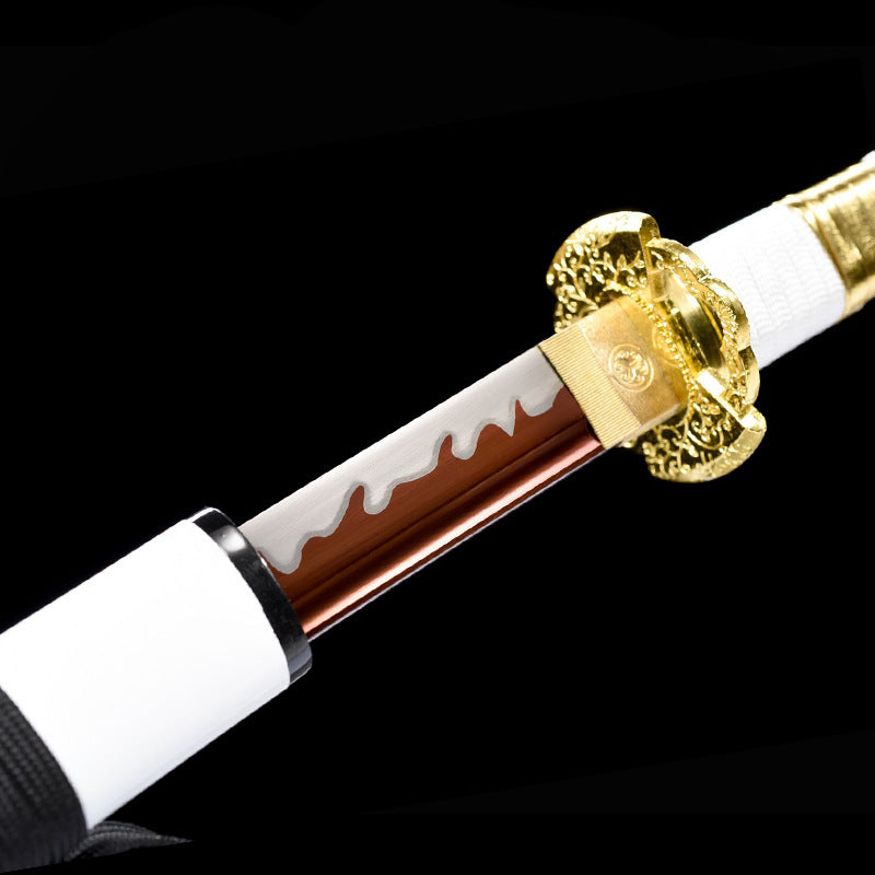 Zinc alloy hilt. solid wood lacquer scabbard with painted family crest and exquisite lower thread