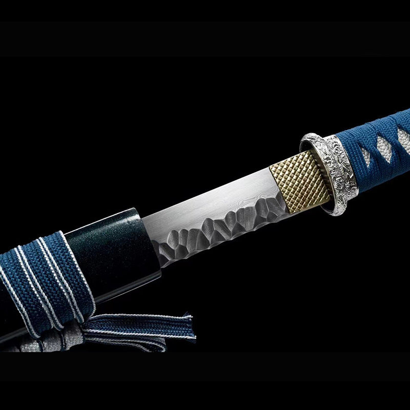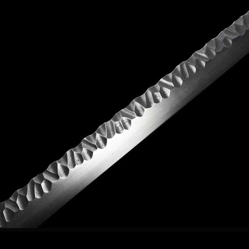 Blade material: Refined pattern steel retains the original forged stone pattern. can be bent 90 degrees and quickly straightened. with a high hardness of up to 58 degrees.