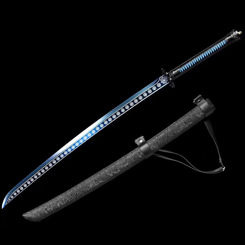 Specifications: Length with sheath 106cm. Blade length 73cm. Handle length 30cm. Blade width 3.6cm. Blade thickness 0.5cm. Total weight: 3 jin